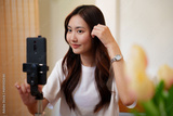 Asian female influencer online recording her lifestyle to her followers.