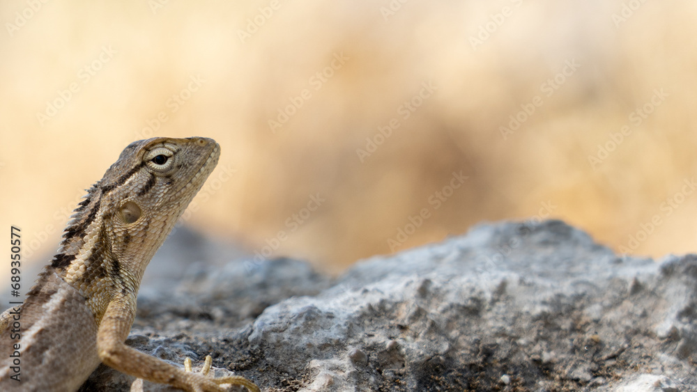 The oriental garden lizard (Calotes versicolor) in oman salalah.