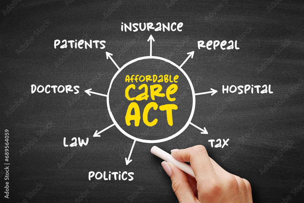 Affordable Care Act mind map concept on blackboard for presentations and reports