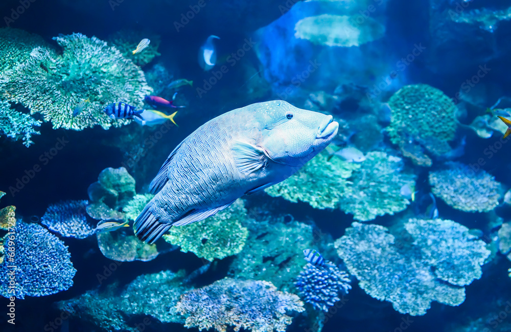 The humphead wrasse (Cheilinus undulatus) also known as the , Napoleon wrasse, Napoleon fish, Napoleonfish in aquarium in Thailand