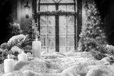 Winter background of free space for your decoration. Snow and frost and christmas tree branch. Cold december day and natural landscape of forest.