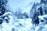Winter background of free space for your decoration. Snow and frost and christmas tree branch. Cold december day and natural landscape of forest.