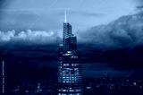 One Vanderbilt modern skyscrapers against cloudy sky