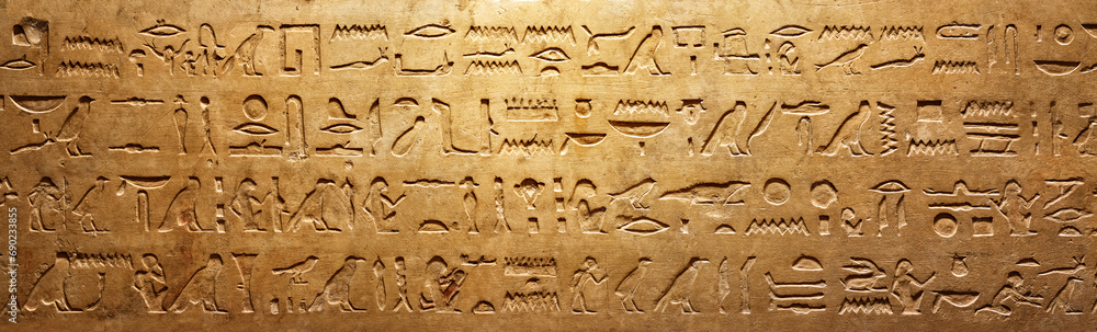 Old Egyptian hieroglyphs on an ancient background. Wide historical and culture background. Ancient Egyptian hieroglyphs as a symbol of the history of the Earth.