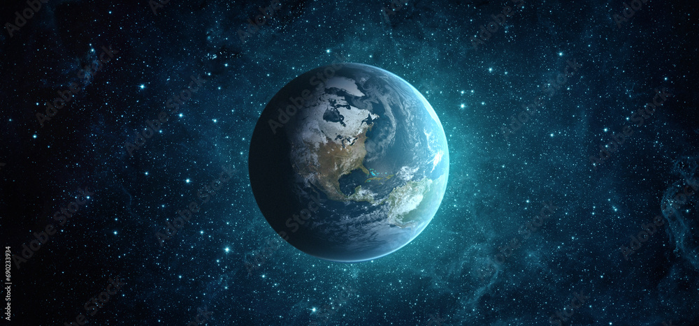 Panoramic view of the Earth, sun, star and galaxy. Sunrise over planet Earth, view from space. Elements of this image furnished by NASA