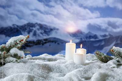 Winter landscape of mountains and mockup of snow and frost. Free space for your decoration.