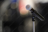 Microphone for press conference speaker report interview concepts or broadcasting public speaking speech presentation stage performance and reporter news with empty copy space background.