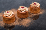 Cakes filled with cream and cherry jam. Box eclairs. New Year and holiday concept.