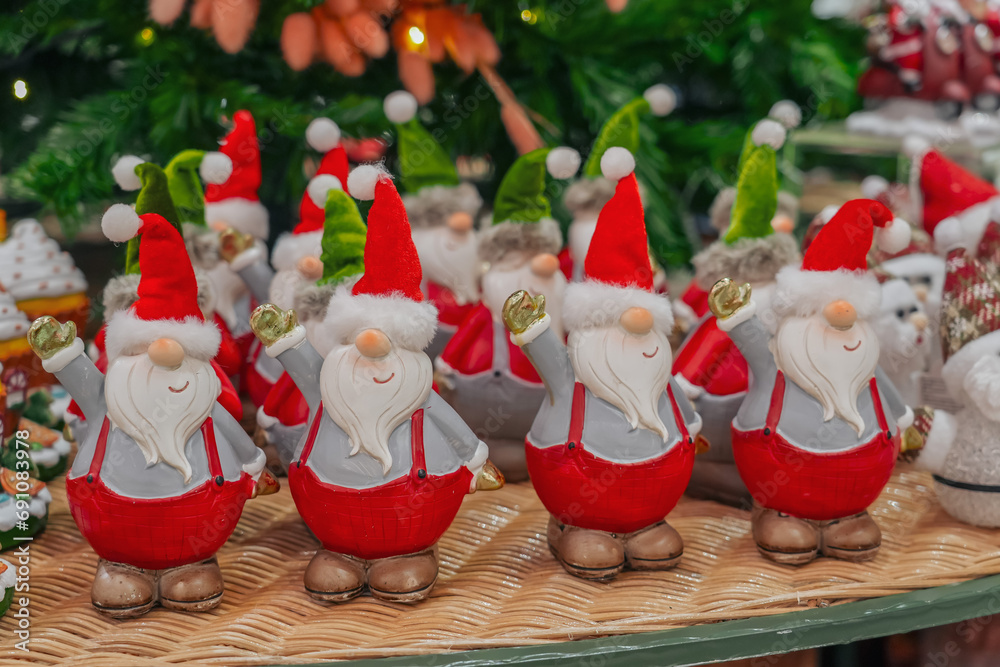 Several Santa Claus figurine in the form of gnomes.