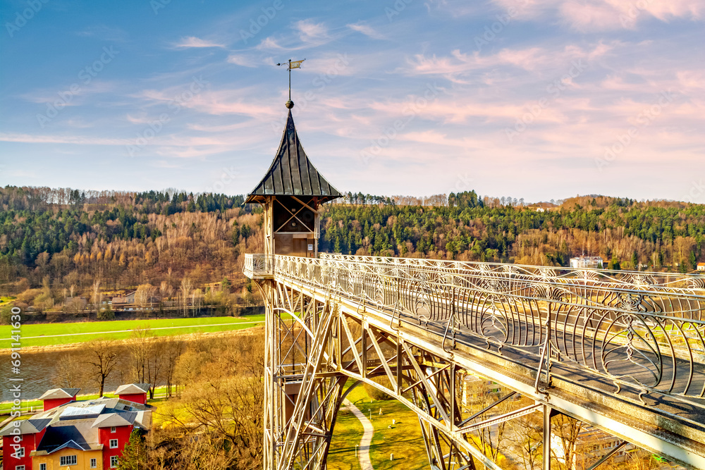 Blick über Altstadt von Bad Schandau, Sachsen, Deutschland