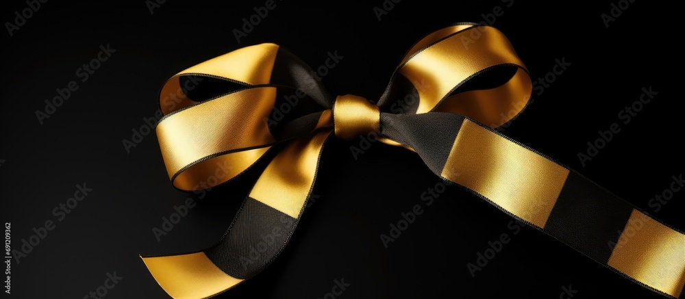 gold color ribbon strap black background