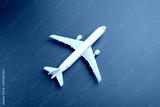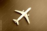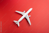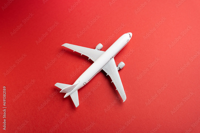 White plane on a red background. Airline operators, air carriers. Business and tourism. Travel. Logistics and transport infrastructure. World communication and commercial flights.