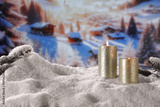 Wooden board of empty space for your decoration. Dark interior of workshop. Natural sun light. empty space for your decoration. Christmas nad new year time.