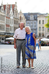 Loving senior couple enjoying city of Leuven, Belgium