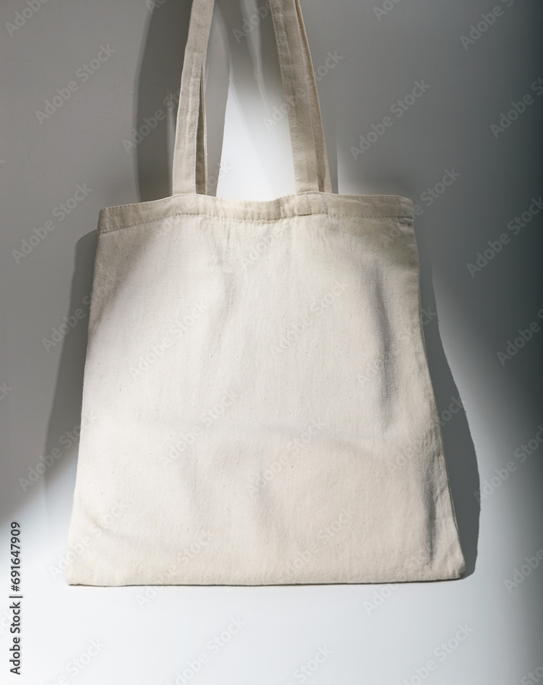 Eco tote bag in daylight. Recycled linen cotton textile shopper mockup
