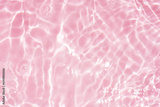 Pink water bubbles on the surface ripples. Defocus blurred transparent pink colored clear calm water surface texture with splash and bubbles. Water waves with shining pattern texture background
