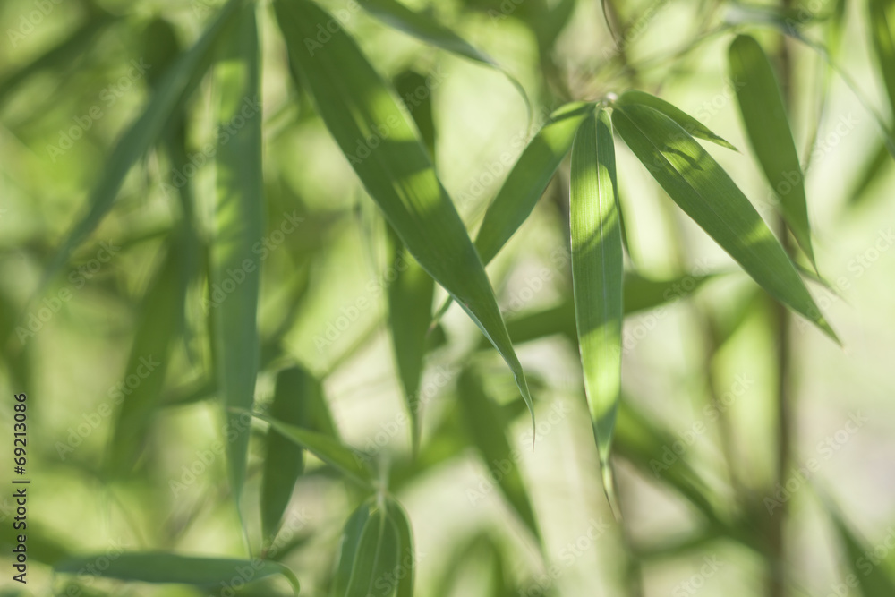 bamboo leaves and twigs with blurred background