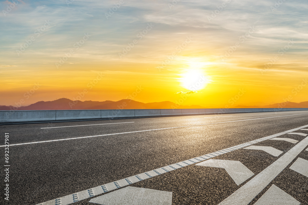 Asphalt highway road and mountain with sky clouds at sunset