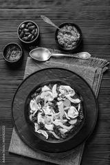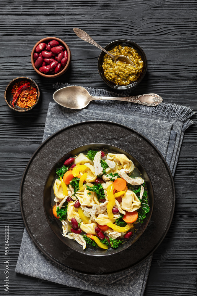 chicken minestrone soup with tortelloni in bowl