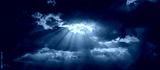 Panoramic view of clouds and sun with beautiful rays against the sky. Dramatic clouds after a storm, typhoon and sunbeams as a symbol of hope and faith.