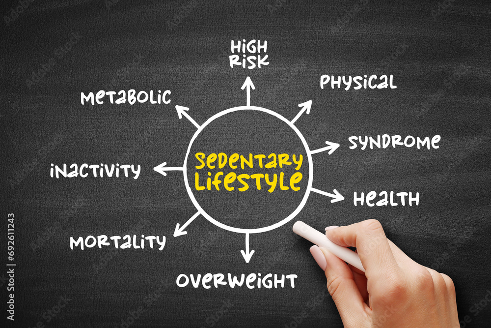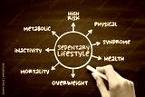 Sedentary lifestyle is a lifestyle type in which little to or no physical activity and exercise is done, mind map concept on blackboard for presentations and reports