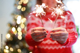 Young woman holding sparkler