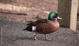the male the chestnut teal duck has a green head and neck and a brown body