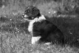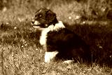 Amazing puppy of australian shepherd sitting in the grass