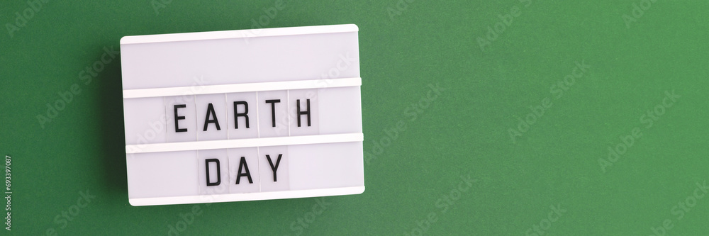 Earth day. White lightbox with letters on a green background. Banner with place for text.