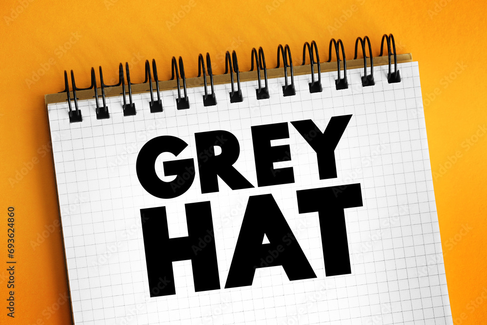 Grey Hat is a computer hacker or computer security expert who may sometimes violate laws or typical ethical standards, text concept background
