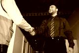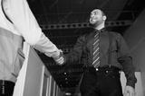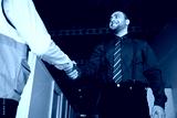 businessman shaking hands with coworker before starting work in the warehouse storage