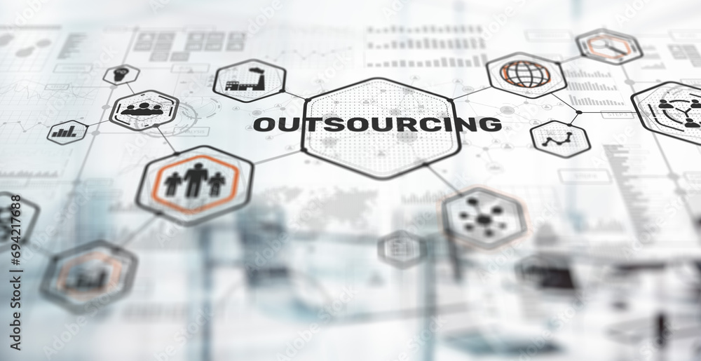 Outsourcing. Recruitment business strategy concept. Internet and modern technology
