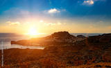 Acropolis of Lindos and city on the island of Rhodes in Greece.