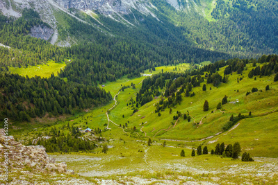 landscape with hills, forest and trail