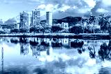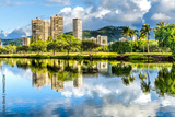 Colorful Green Trees Buildings Ala Wai Canal Reflection Honolulu Hawaii
