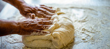 Preparation doughs. Preparation doughs women's hands. Making dough by male hands at bakery. Food concept. Hands dough. Female hands making dough for pizza. Chef in professional kitchen prepares dough