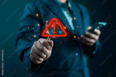 Hacked system notification Cyber attack on a computer network, warning sign, cyber risk, warning, caution, error, threat, network security danger.