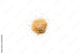 Close-up of a heap of organic raw brown sugar isolated on a transparent background with shadows from above, top view, png
