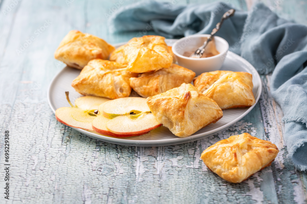Homemade apple turnovers - puff pastry with apple and cinnamon filling