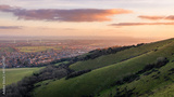 Winter sunrise over the east Sussex countryside from Combe Hilll Butts Brow Eastbourne east Sussex south east England