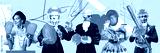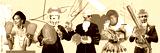 Royal people, princess, queen, king practicing different kinds of sports over bright yellow background. Contemporary art collage. Concept of comparison of eras, sport, game, competition