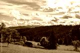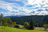 Beautiful view in Carpathian Mountains in sunny summer day. Fresh green hills and pine forest, colorful nature landscape