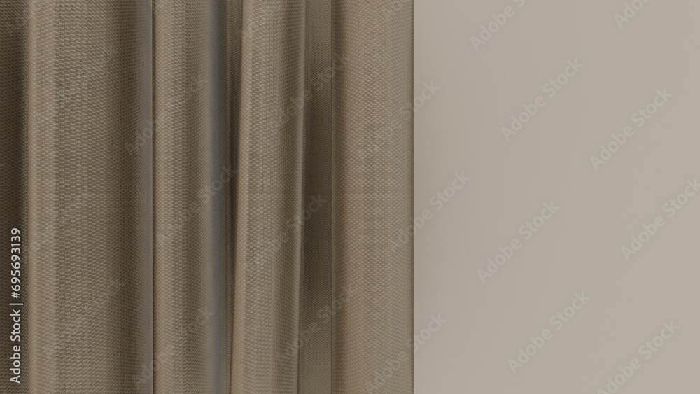Close up of brown curtain on gray background. 3D rendering illustration