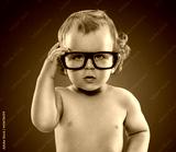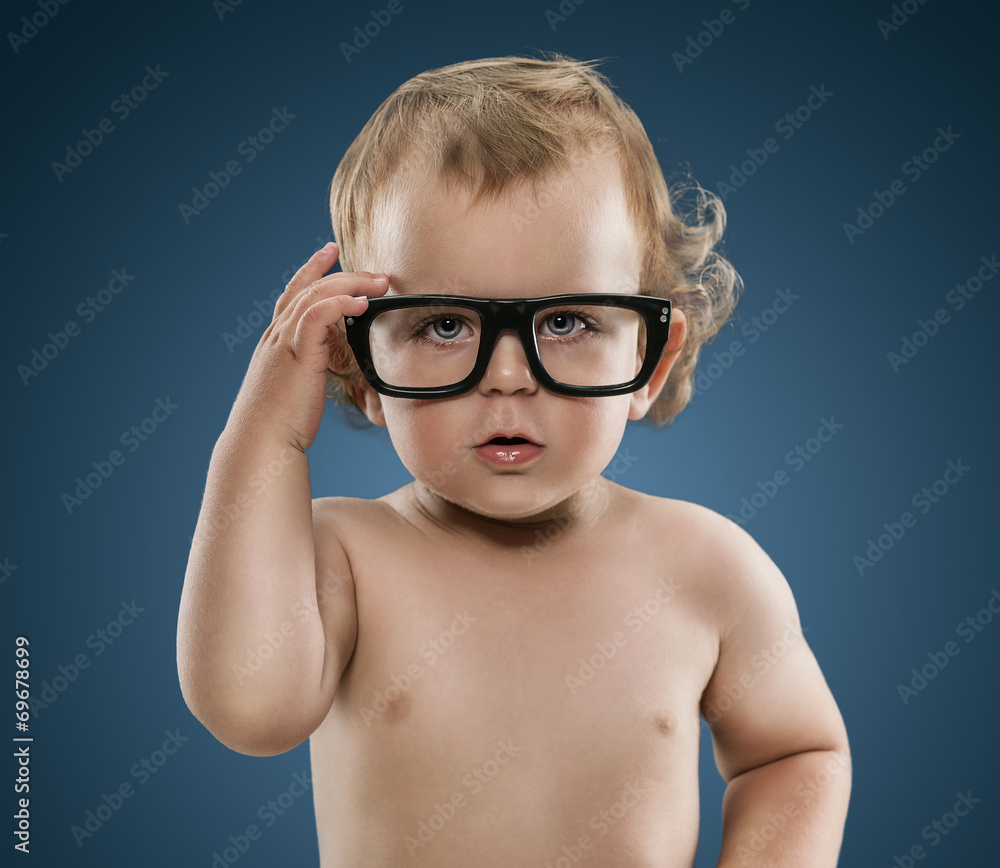 Cute little nerd boy wearing glasses isolated on blue backgroun
