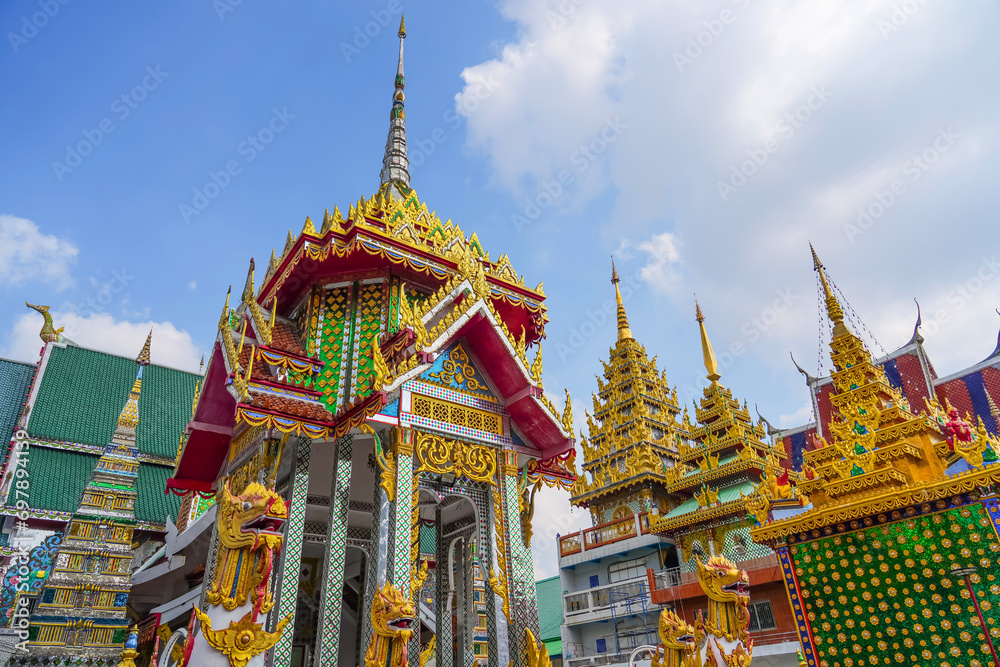 Buddhist temples in Thailand. View of traditional style roofs Waramartaya Punthasatharam Khun Chan Temple