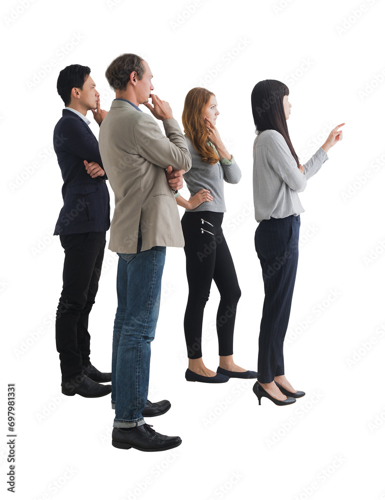 何かを見る多国籍グループ クリッピングパスで精密に切り抜いた背景透過写真PNG