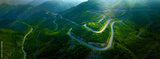 Top view from drone of mountain road in woods in a summer day.