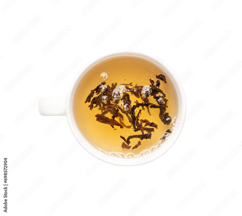 Tea Brewing Process in White Cup Isolated, Stages of Brewing Black Tea, Brew Ceremony, White Background