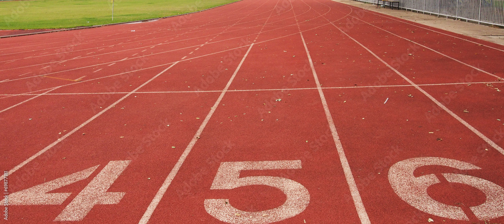 Red running track with number