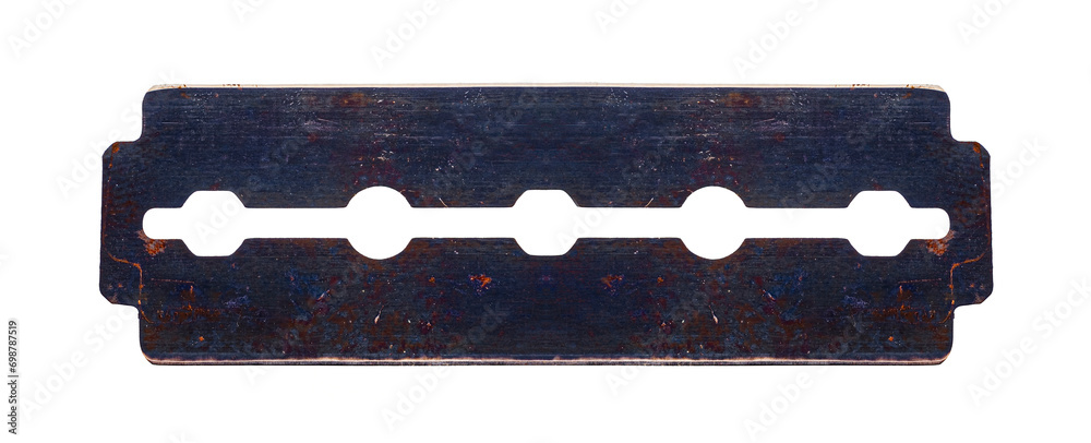 Corrosive rust on the vintage razor blade isolated on white background